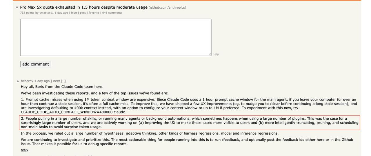 A friend sent me a Hacker News screenshot. Boris Cherny, Claude Code creator, was explaining why bills spike: million-token contexts get expensive fast, and background agents trigger surprise charges for “a surprisingly large number of users.” The thread had 750+ points and 650+ comments.