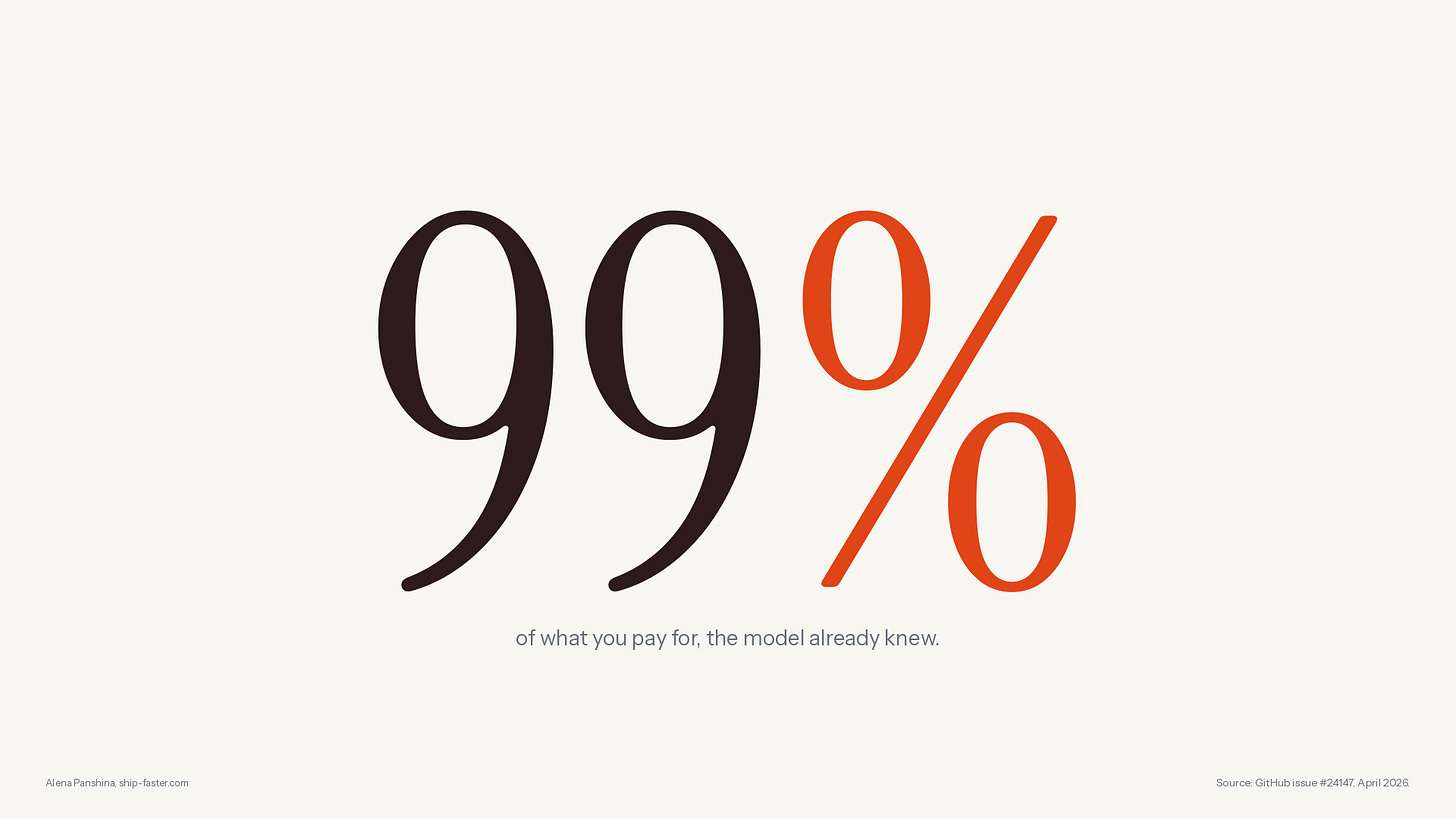 A developer who audited 30 days of Claude Code put a number on it: 1,310 re-reads per 1 productive token. 99.93% of what I was paying for was the machine reading what it already knew.