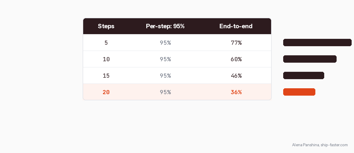 Step tax. How many steps in your pipeline? Multiply: 0.95^N = your theoretical reliability ceiling. Is every step worth the tax?